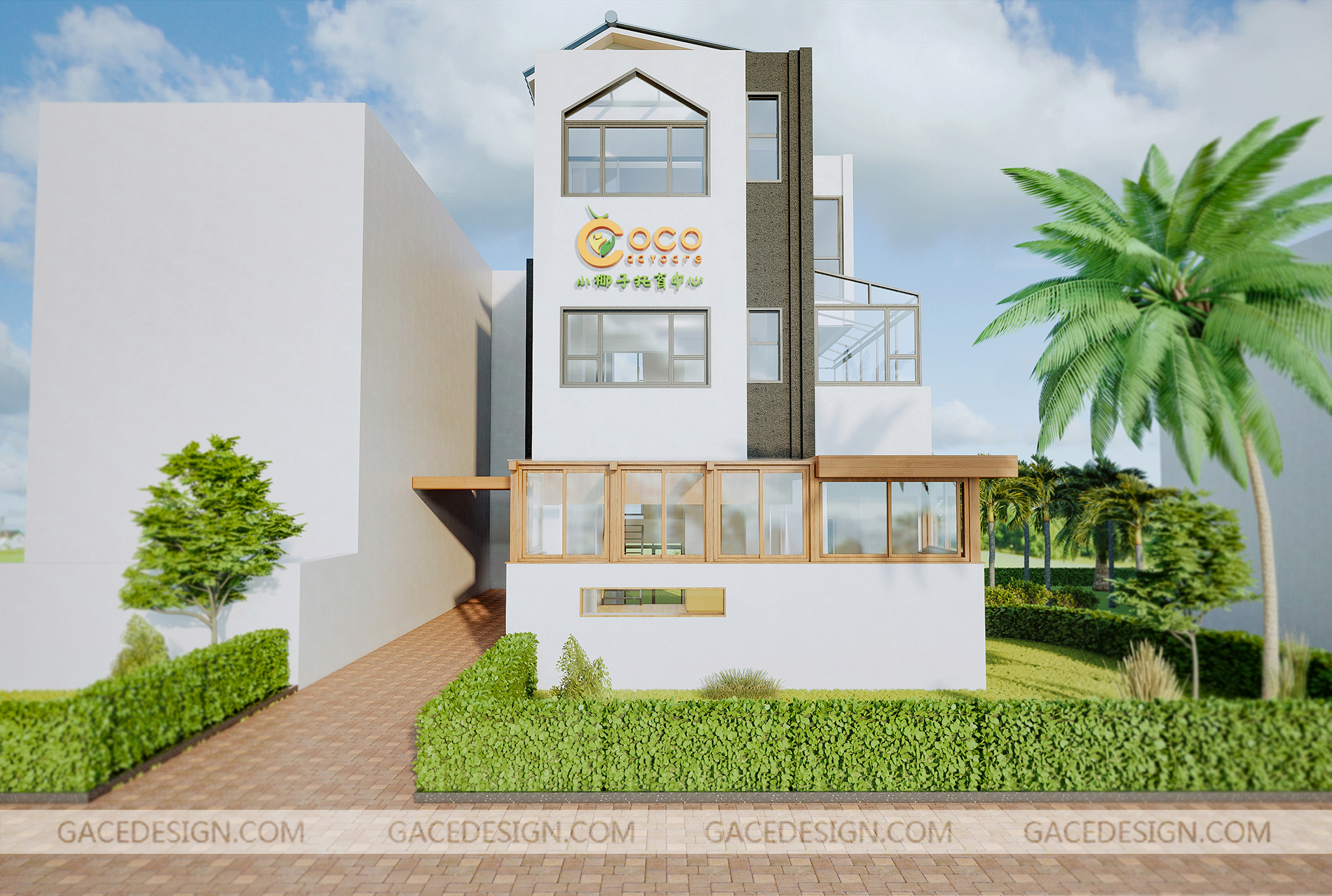 小椰子托育中心位于??谑行阌^高爾夫溫泉別墅內,占地面積1280平方米,其中戶外面積828平方米,共設計4個教學班,為0-3歲嬰幼兒提供家庭式的托育服務,為3-6歲幼兒提供托管服務。