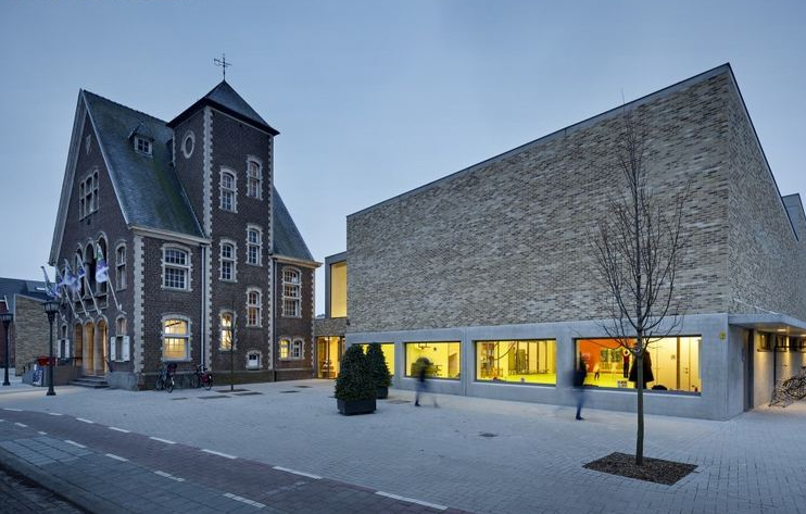 孩子們將在現(xiàn)在和過(guò)去并存的環(huán)境中成長(zhǎng)。老的市政大廳被改成前廳,包含所有的管理職能。孩子通過(guò)漂亮的前市政大廳進(jìn)入新學(xué)校,這個(gè)大廳是座別致的建筑,是Bonheiden鎮(zhèn)為數(shù)不多的古老建筑之一。