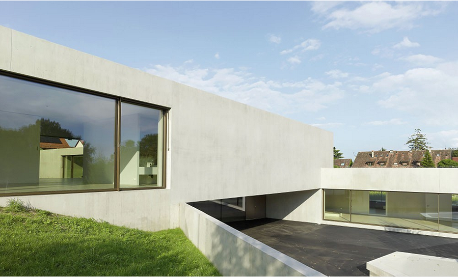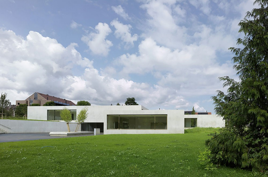 朝向不同方向的大型采光窗更加強調了建筑的自然品質,在建筑選址中,建筑師更多的考慮了視覺關系。建筑在室內外均采用了混凝土材料,使之與地形和周邊環境融為一體。