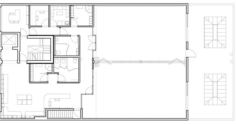 舞蹈教室設有彈簧地板和明亮的天窗,為舞者創造了絕佳的環境。兩間教室之間采用可變隔墻,在演出時可以將隔斷完全打開,形成一個帶遮光簾的巨大舞臺。