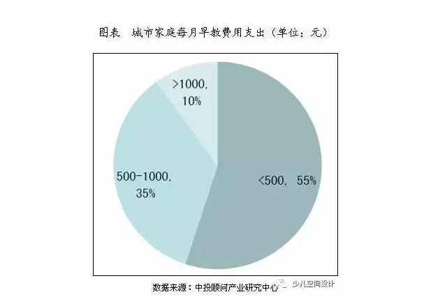 中國目前家庭教育消費的年均增速為20%,育兒支出已占中國家庭平均收入的23%。教育支出在中國家庭已經超過其他生活費用,成為僅次于食物的第二大日常支出。56.5%的家長把孩子教育投資列在首位,35%的城市家庭每月在孩子身上的早期教育費用支出在500-1000元,10%的家庭每月用于孩子的早期教育費用支出高于1000元/月。龐大的早教需求,誘人的早教市場,致使早教行業應運而生,早教機構風生水起。