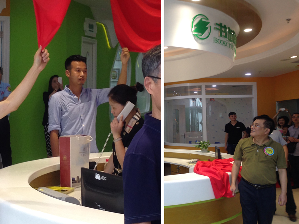 2014年7月12日上午11:00,深圳書城培訓(xùn)南山書城旗艦店正式升級啟航,在南山書城5樓舉行了隆重的揭牌儀式。書城培訓(xùn)南山書城旗艦店是書城培訓(xùn)轉(zhuǎn)型以后打造的第一家針對于青少年為主的形象店。公司設(shè)計總監(jiān)賀維,創(chuàng)意總監(jiān)朱行奇應(yīng)邀參加開業(yè)典禮,設(shè)計總監(jiān)賀維并被邀請參加了揭牌儀式。項目設(shè)計效果得到了領(lǐng)導(dǎo)的高度認可和家長學(xué)生們的贊賞。